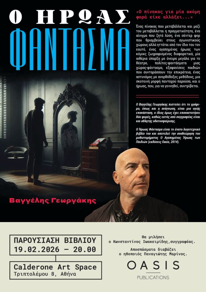 ΕΠΙΚΑΙΡΟΤΗΤΑΠΟΛΙΤΙΣΜΟΣΠαρουσίαση του βιβλίου “Ο Ήρωας Φάντασμα” 12/02/202612/02/2026 Κοινοποίηση Παρουσίαση του βιβλίου “Ο Ήρωας Φάντασμα” του συγγραφέα και πολίστα Βαγγέλη ΓεωργάκηΠέμπτη 19 Φεβρουαρίου στο Calderone Art Space